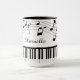 Caneca de café de música moderna e personalizada, com teclado de piano e notas musicais com um nome, monograma ou texto personalizado na sua escolha de cores e estilos de fonte (mostrados em preto e branco). Ideal para professores de música, músicos e profissionais de música. O exemplo é mostrado na caneca tamanho 15 oz com alça colorida e dentro—outros tamanhos de caneca, estilos e cores estão disponíveis na página de pedido ou você pode transferir o design para outro produto. ASSISTÊNCIA: para obter ajuda com a modificação ou personalização do design, alteração de cor, redimensionamento ou transferência do design para outro produto, entre em contato com o designer ANTES DE ENCOMENDAR através da guia MENSAGEM de Bate-papo Zazzle abaixo ou envie um email para makeitaboutyoustore@gmail.com.