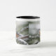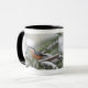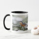 Caneca Pica-pau-cinzento no ramo nevado no inverno