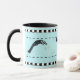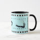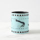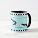 O trio dos pilates figura o círculo uma caneca em preto e branco com uma beira verificada. A cor do fundo pode ser personalizada.