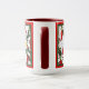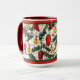 Pimentos de pimenta vermelhos e verdes, festivos, com prigos verdes e luzes de Natal brilhantes, constituem o padrão na trabalho de arte. Personalize a cor de fundo, se desejar! Mostre um pouco de espírito de festa com seu café de férias, e Feliz Navidad!