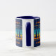 Personalize esta caneca com seu nome ou texto. Inspirada pelos lindos céus do pôr do sol e Pinheiros Ponderosa altos da Arizona, esta obra de arte original apresenta um céu alaranjado, amarelo e azul, por trás de árvores geométricas ponderosas e estrelas em fundo azul profundo. Estilo Lodge, sudoeste ou Papais noeis Fe. Todos os designs criados e protegidos por copyrights pela Artellus e contêm uma assinatura oculta. Não Copiar. Sudoeste,pôr do sol,oeste,alojamento,ponderosa,arizona,papais noeis+fe,céu,geométrico,pino
