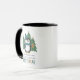 Esta caneca de Natal divertida e humorística apresenta um pinguim desenhado pela mão, vestindo um chapéu e cachecol em azul lacrimogênio. Ele está em frente a algumas árvores de Natal e segurando um biscoito de gengibre. Tocar em palavras texto lê, "É pinguin-ing se parecer muito com o Natal," com a palavra NATAL em letras coloridas. Excelente para aqueles que amam trocadilhos!