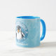 Mug com bela ilustração de um pinguim fofo. Texto tipográfico diz "Víblias de inverno Frio". Você pode personalizar seu nome! Visite nossa loja para mais designs.