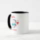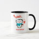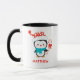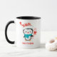 Um pinguim simples e fofo, caneca de Natal. O pinguim está vestindo um chapéu de bolinhas vermelha e um cachecol azul e segurando uma cana doce. Personalize-o para um presente ou para si mesmo! Projetado para você pelo Blackberry Boulevard.