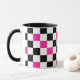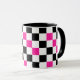 Caneca Pink Black White Checkered Pattern Design