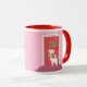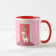 Esta caneca branca apresenta uma ilustração adorável de um gato branco e de um rato lúdico, enfeitiçado em trajes festivos, contra um pano de fundo alegre de férias.