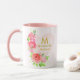 Caneca Pink Watercolor Rose Floral Monogram Initial