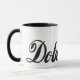 Um Pinscher do Doberman que descansa sobre o texto retro "Doberman" da pia batismal - design original para proprietários do Pinscher do Doberman e todos os amantes deste cão produzem!