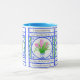 Uma caneca branca com um punho e uma borda do azul de pó. O design é de alguns jacintos, ilustrando o poema - 'se mil da fortuna bereft e de thy bens terrestres sairam, dois nacos, a venda uma e com o dole, JACINTOS do COMPRAR PARA ALIMENTAR A ALMA. Veja o cartão igualmente de harmonização e os outros produtos.