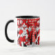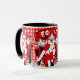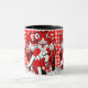 Caneca Playful Red White Winking Cat & Chickens Pattern