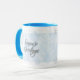 Um Design de Imagens Digitalbcon apresentando um tema de cor azul e branca em pó com uma variedade de imagens, formas, padrões, estilos e fontes personalizadas nesta Mug de "Saudações da Época" monocêntrica. Esta design colorida e atraente vem completa com a inscrição "Feliz Natal" em prata e faz um belo presente de Natal para a família, amigos ou como uma troca de presentes no escritório! Que melhor maneira de dizer "Saudações da Época!"