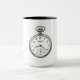 Um gráfico antigo de um relógio de bolso vintage se destaca maravilhosamente em uma caneca preta e armada! Crie uma coleção de itens de cozinha moderna de vuntagem steampunk para um estilo de design.