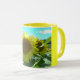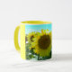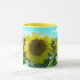 Esta caneca da campainha caracteriza uma foto dos girassóis no centro, dos sidepanels do amarelo brilhante, de uma beira de azul escuro em torno da foto e dos sidepanels, e de um beijo da luz - amarele em torno da borda e no punho. Esta é a mesma foto que eu me usei para criar outros dois produtos em minha galeria--Do "poder girassol--Cartão" e "poder do girassol--Selo". Foi tomado em um dia ensolarado de agosto em um grande campo dos girassóis perto de Rochester, NY. Outras três fotos que eu recolhi que o mesmo campo nesse mesmo dia estêve usado para criar diversos outros produtos em minha galeria.