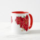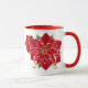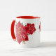Uma caneca de café cerâmica festiva mostrada com uma design de impressão de poinsettias vermelha festiva de Natal. Personalize este item ou comprar como está.