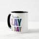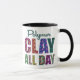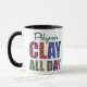 It's a polymer clay day! Bring this mug to your next polymer retreat, an upcoming class, or leave it at your clay table. Fill it with coffee or art supplies! The letters of "CLAY ALL DAY" are filled with Jubilee Cane millefiori designs by Lisa Clarke.