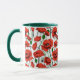 Mug em um delicado padrão de papoilas vermelhas vibrantes com caules e folhas verdes profundas, em um tempo de fundo, com cada papoila crescendo e torcendo exclusivamente, como se balançando suavemente na brisa.