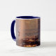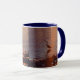 caneca de 15 onças que caracteriza o por do sol da garça-real de grande azul @