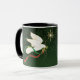 Personalize esta bela Taça de Natal "Um Tipo"! Ela apresenta uma pomba branca serena voando entre as estrelas Carregando um ramo de oliveira com fitas vermelhas e verdes! Esta é uma design original do artista Kerry Miller.
