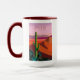 Este design é um poster contemporâneo com uma expressão gráfica simples da paisagem do deserto no vermelho, no rosa e no roxo mornos com o cacto do saguaro no primeiro plano. A abreviatura "PHX" do texto aparece no auge do poster e da "arizona" no tipo branco pequeno no fundo.