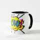 Forma explosiva de efeitos sonoros de quadrinhos com texto colorido "Pow!".