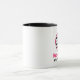 Esta caneca para professores caracteriza um design de uma maçã branca esboçada no rosa quente com bolinhas pretas.  O texto pode ser personalizado ou suprimido.