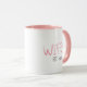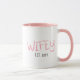Caneca de Café da Esposa do Ano de Estabelecimento Personalizável em uma fonte moderna e divertida, perfeita como presente de casamento para casais ou presente de aniversário. Aqui em dois tons - rosa e branco.