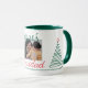 Espanhol Único Duas Fotos Colagem Presente de Natal para Mãe Mug com Mão Moderna desenhada Árvore de Natal com cores clássicas de Natal vermelho e verde. Personalize adicionando suas próprias fotos.