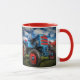 Caneca do presente do rancheiro do fazendeiro do vermelho azul de trator de fazenda