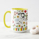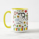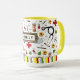 Caneca criativa com tema médico para sua enfermeira favorita, apresentando suprimentos de enfermagem e flores. Para personalizar, edite o texto para adicionar o nome.