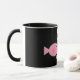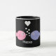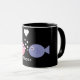 Caneca preta & branca da campainha dos peixes com os peixes bonitos dos desenhos animados, bolhas & coração azuis & cor-de-rosa do amor. A cor do texto & do fundo é customizável - lotes das pias batismais e das cores escolher de. Visite por favor minha loja do design do céu de Molly para a fotografia espanhola do cenário & do animal & as cargas das ilustrações do divertimento, as bonitos & as retros. Uma vasta gama de produtos disponíveis: canecas; canecas de viagem; correntes chaves; sapatilhas; selos; T-shirt; gravatas; skates; ímãs; cartões; cartão; mouse pads; aventais; gravatas; roupa do cão; as bolsas; botões/crachás; etiquetas; bonés; produtos relacionados wedding; crianças & roupa do bebê; ornamento de suspensão; pinos/broches; marcador (no volume); posters, & pastas.