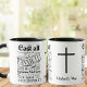 Caneca preto e branco, 1 Peter 5:7, cristão