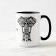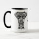 A caneca de café preto e branco à moda, com gráficos de um henna modelou o elefante, em ambos os lados. Personalize o texto, na parte dianteira da caneca para o senhor mesmo ou como uma grande ideia do presente a qualquer um.