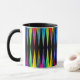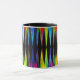 Você pode mudar a cor do fundo (mostrada aqui em um preto moderno) desta caneca a toda a cor que você gostar e você igualmente tem uma escolha de oito cores para o punho e o interior. Um grupo em cores diferentes é uma maneira do certo-fogo de liven acima de sua mesa da cozinha e de pequeno almoço.