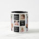 Ideia única de presente de primeiro dia de os pais - Uma caneca de café fotográfica moderna com uma grelha de colagem criada com 5 imagens e mensagens num bloco preto de tendências.