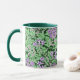 Pretty purple floral pattern with green leaves, popular ornamental design.