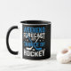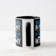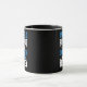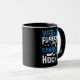 A caneca de jogador de hóquei com um ditado humorístico mostra texto branco e azul em um fundo preto que lê Previsão do Fim de Semana 100% Chance de Hockey!