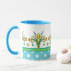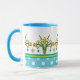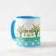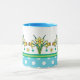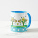 Uma Mug de Café muito bonito, com uma Alça e Alça Azul-Céu e um padrão de Daffodils Amarelos Ouros e Bolinhas Brancas no Azul-Céu. Parte da coleção Posh e Painterly "Primavera Sunshine", esse padrão pode ser ajustado para ajustado qualquer Mug.