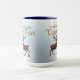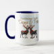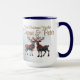 Caneca de Natal personalizável - Primeiro Natal Juntos. Mude os nomes da caneca para a sua, torne-a única! Perfeito para presentes personalizados, sempre com amor. A imagem mostra o espírito festivo do Natal, com renas de Natal. Feliz Natal e Feliz ano novo!