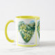 Um impressão em forma de coração de um quadro original de mídia mista de um casal de flores amarelas selvagens de cowslip em Long Eaton, East Midlands, Reino Unido. O texto pode ser facilmente personalizado.