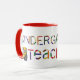 Mug de professor de jardim de infância de EXCELENTE com cartazes feitos de lápis e lápis e desenho de um ônibus escolar e maçã. É um presente perfeito para qualquer professor de jardim de infância. Outros itens com designs semelhantes disponíveis em nossa loja - www.zazzle.com/Teach1029