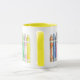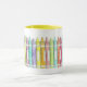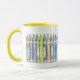 Uma caneca de café fofa decorada com lápis cor desenhados a lápis e lápis colorido num arco-íris de cores. Um presente de excelente para um professor!
