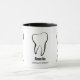 Uma caneca com ilustração de um dente dental feita com um contorno preto.
