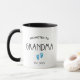 Este dois tons, preto e branco, mostra a design "PROMOVIDO AO GRANDMA" em uma bela FONTE, junto com os pés azuis dos bebês e o ano "EST". Faz um presente ideal para o Dia dos Avós, Natal, aniversários, ou mesmo como um delicioso anúncio de gravidez. A vovó em breve pode tesourar esta guarnição para sempre!