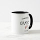 Esta caneca de dois tons, a preto e branco, mostra o design "PROMOTED TO GRANDPA" em uma fonte adorável, junto com pés cor-de-bebê rosa e ano EST. Faz um presente ideal para o Dia dos Avós, Natal, aniversários, ou mesmo como um delicioso anúncio de gravidez. O vovô, que vai ser o próximo, pode tesourar esta guarnição para sempre!