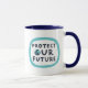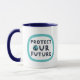Este design apresenta a frase "Proteger nosso futuro" em letras modernas em fundo branco.