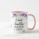 A caneca de café de amizade retrata um simples design floral de aquarela com flores lavandas, azuis e roxas. Ele apresenta duas citações inspiradoras tiradas no capítulo 27 do Proverbs. Primeira escritura do versículo 9, "Uma doce amizade refresca a alma." O outro foi tirado do verso 17, "Amigos afiam as mentes uns dos outros."*