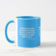 Esta caneca de dois tons mostra uma design que apresenta uma fonte impressão de Loubag com letras brancas que apresenta o verso da bíblia "Proverbs 3:27" KJV sobre um fundo azul claro neste tema baseado na fé. Este verso está referindo o 3º capítulo do Livro dos Provérbios, mostrando o 27º verso neste tema de citação da bíblia do Rei James bíblia. A jante e o manípulo são vidrados em cores compatíveis, disponíveis em micro-ondas e máquinas de lavar louça de tamanho 11 onças ou 15 onças, construindo cerâmica segura.