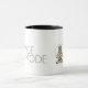 Um sábio meditating em uma caneca, com tipografia diferente.