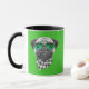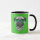 Características deste design um retrato do pug dentro com óculos de sol e um lenço checkered preto e branco.