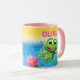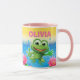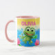 Pulando o sapo party a caneca cor-de-rosa combinado cerâmica CONHECIDA feita sob encomenda. Pulando o presente cerâmico feito sob encomenda da caneca do partido do sapo. Uma de minhas ilustrações favoritas. Este sapo pequeno do pulo ama aniversários e partidos tanto que está saltando certo fora da imagem. Aperfeiçoe para mercadorias do partido de todo o miúdo, você encontrá-la-á em cartões, convida-a e placas e vário roupa dos miúdos. Tudo com idades e nomes customisable para o partido costurado perfeito.